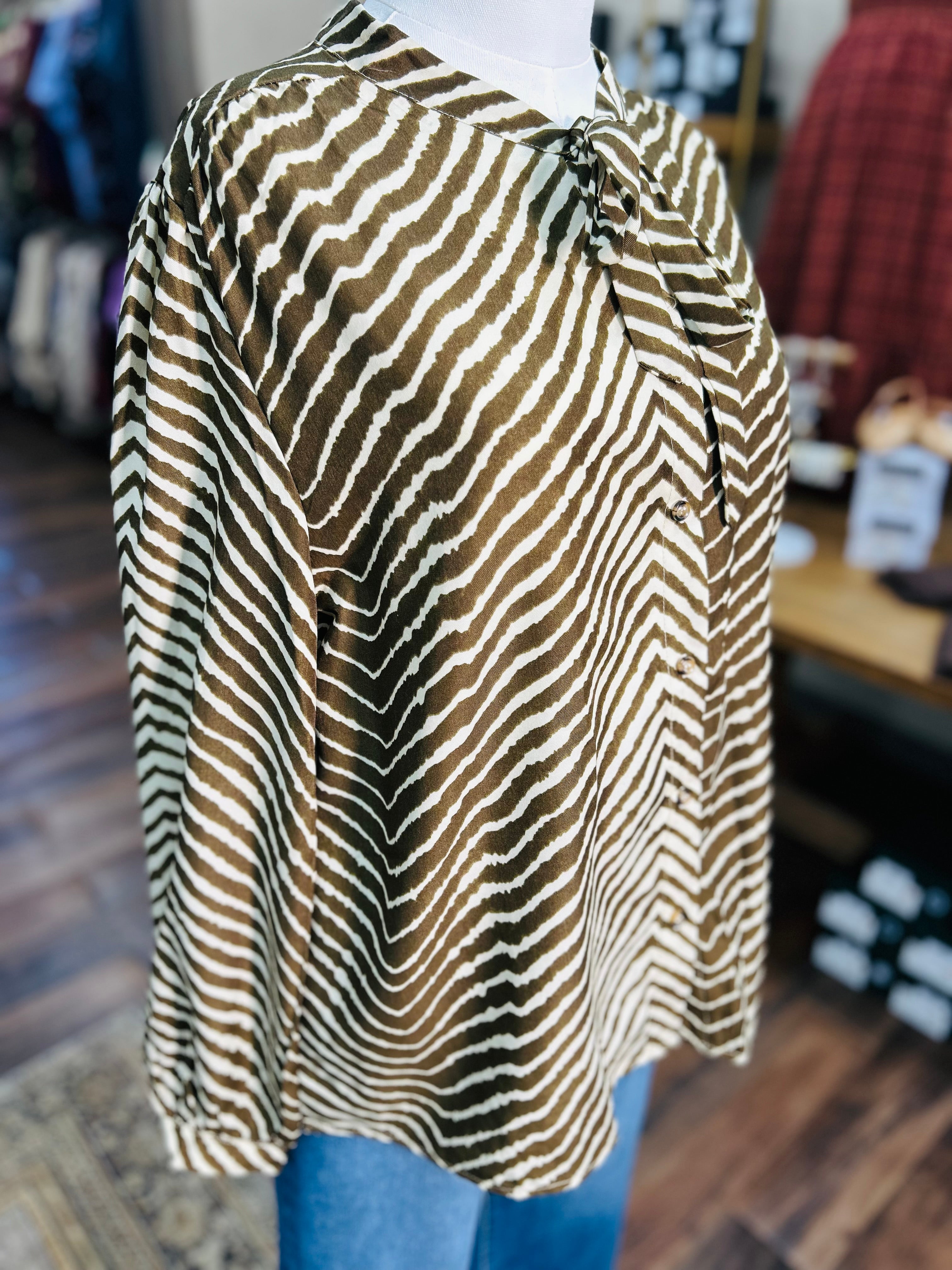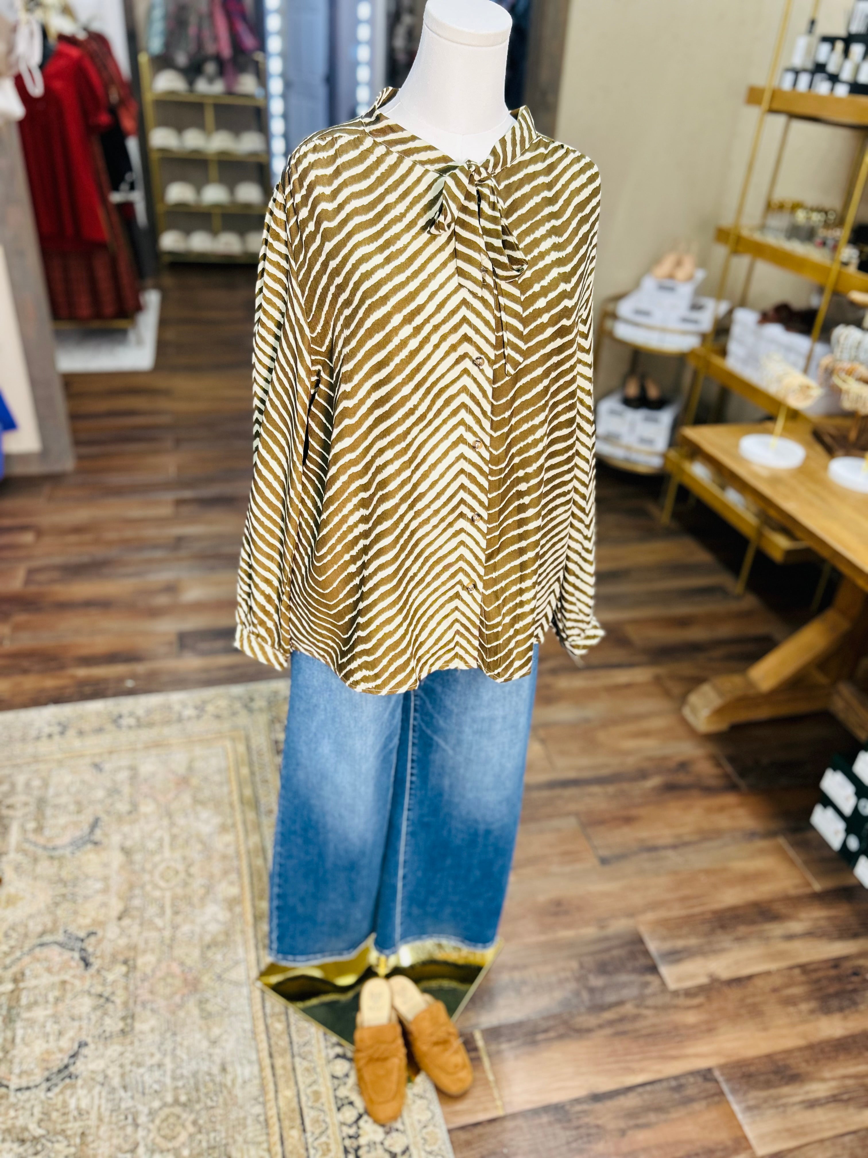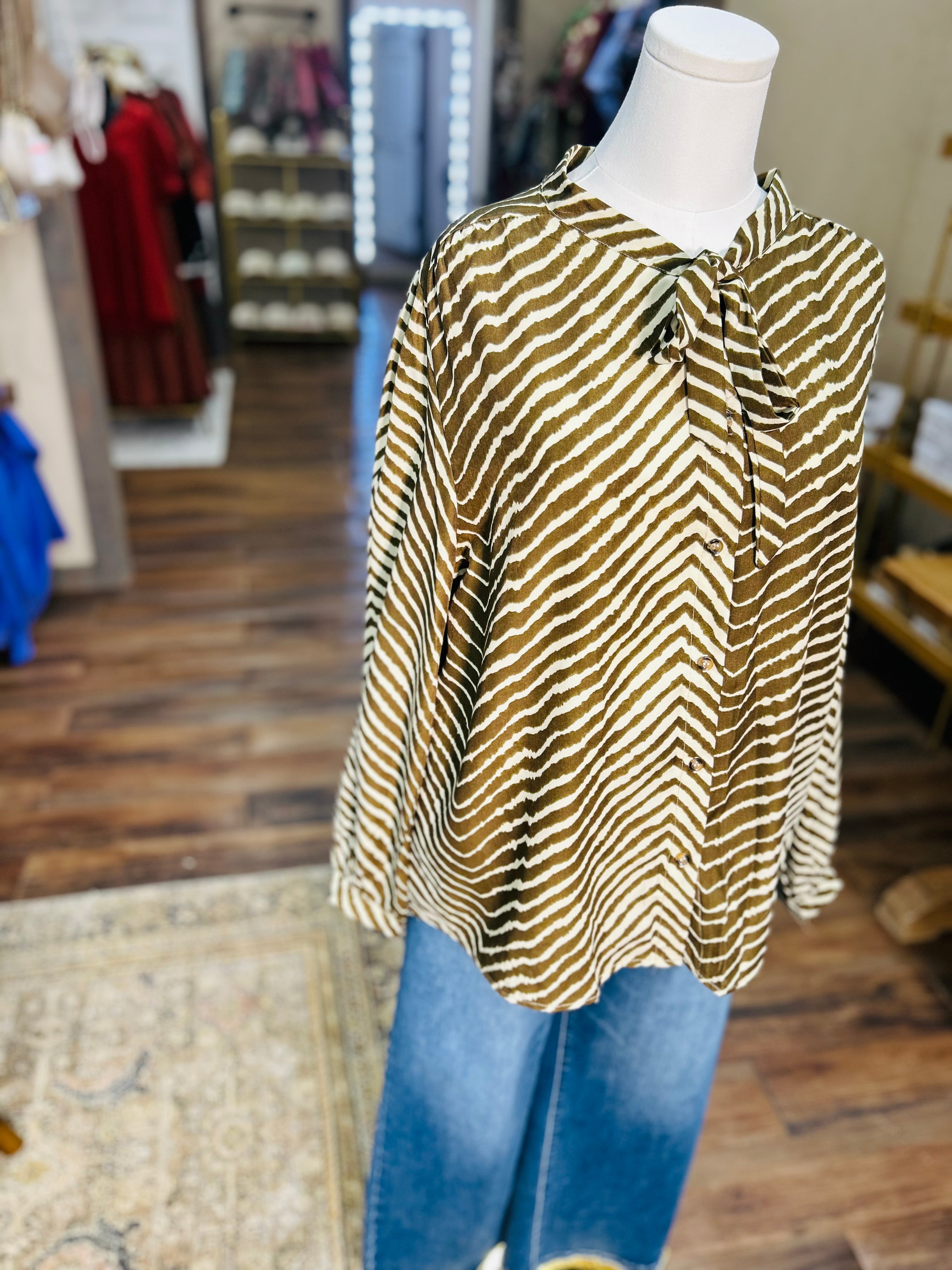 Get ready to turn heads this autumn with the Taupe Tiger! Featuring playful brown and creme stripes, this button-down adds a fun flair to your cozy fall wardrobe. Perfect for layering or wearing solo, its warm tones and bold pattern bring a stylish twist to chilly days. Embrace the season with a shirt that’s as lively and adventurous as you are!