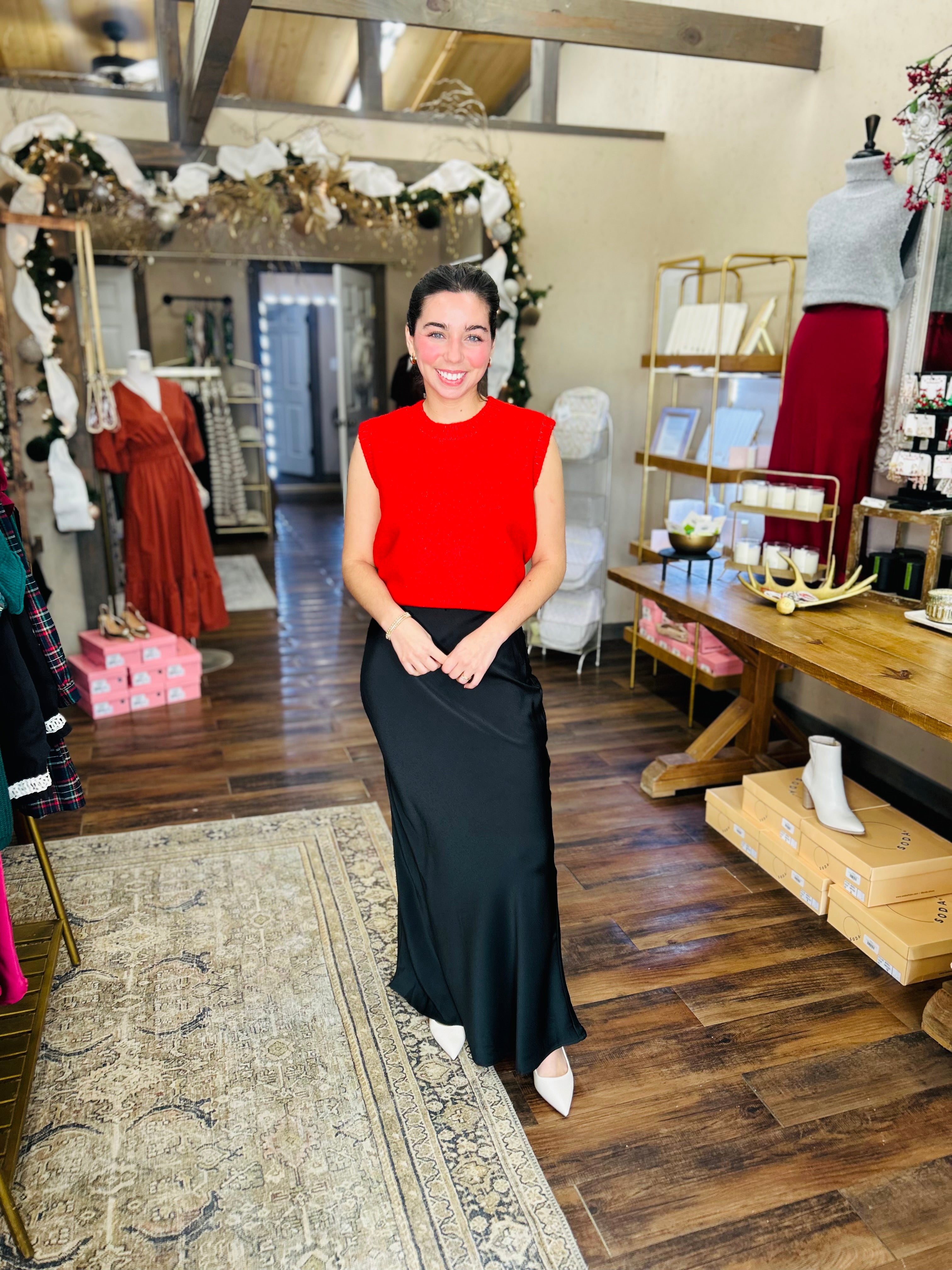"The Evelyn Skirt" Featuring a sleek, flowing silhouette, this mid-length skirt is designed for stylish comfort and versatility. Ideal for a casual day out or a sophisticated evening, pair it with a fitted top or oversized sweater. An essential in transitional layering, complement it with ankle boots or sandals depending on the season.