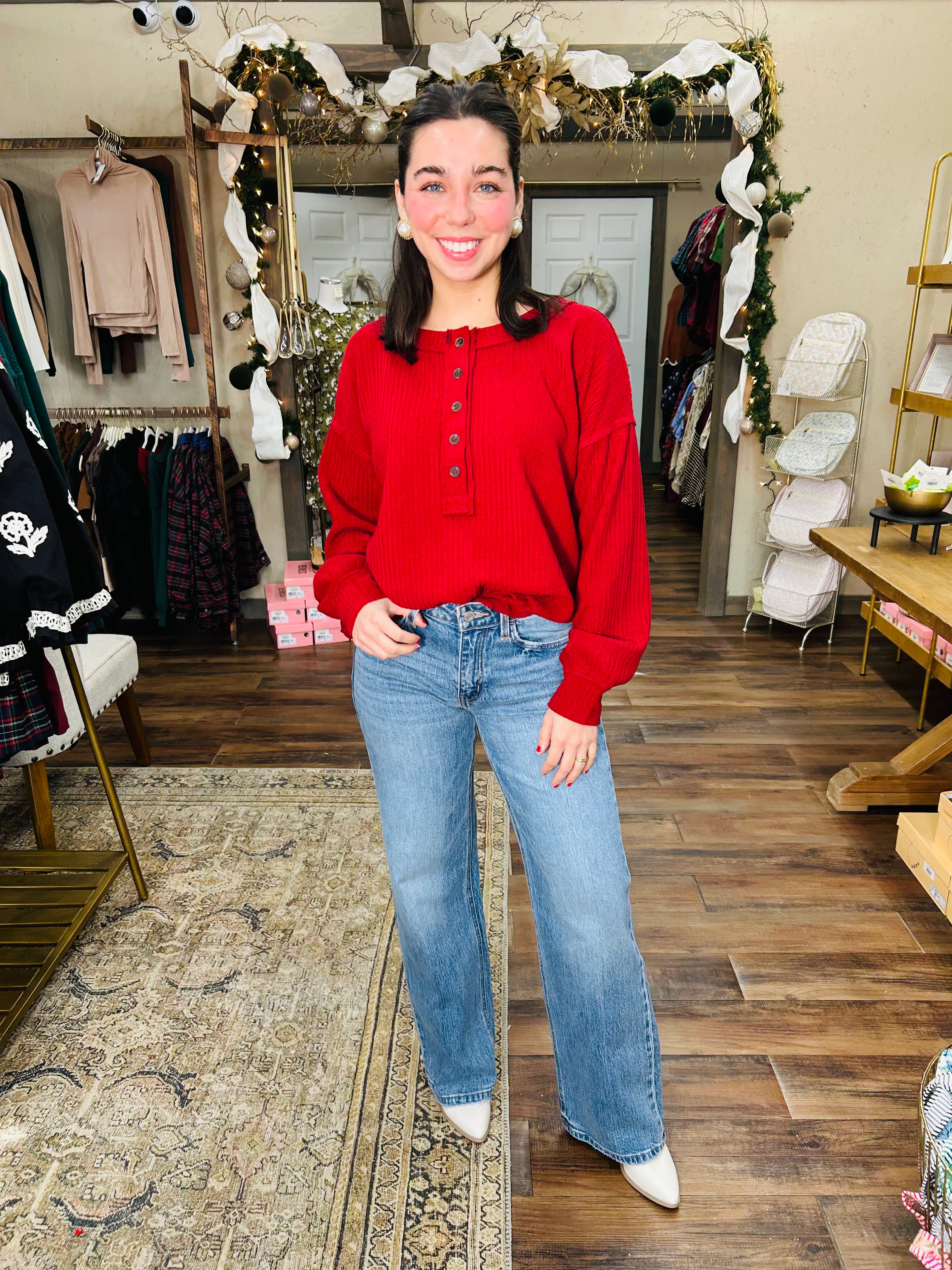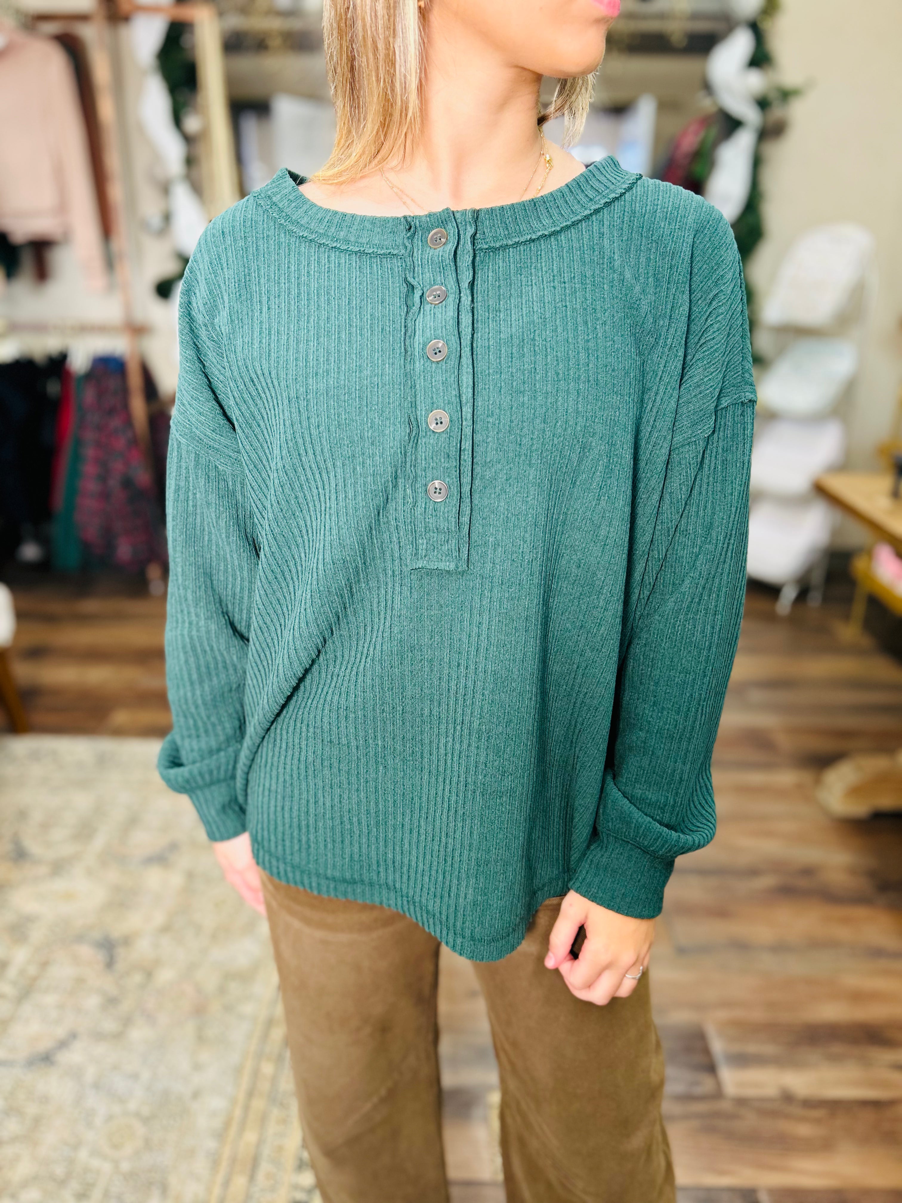 Elevate your everyday basics with this ribbed henley that's anything but boring. The exposed seam detailing adds an unexpected edge to a timeless silhouette, while the long sleeves and fitted knit keep you cozy and chic. Perfect for layering or wearing solo, this versatile piece transitions seamlessly from casual coffee runs to weekend hangouts. A wardrobe essential that proves simple can still make a statement.
