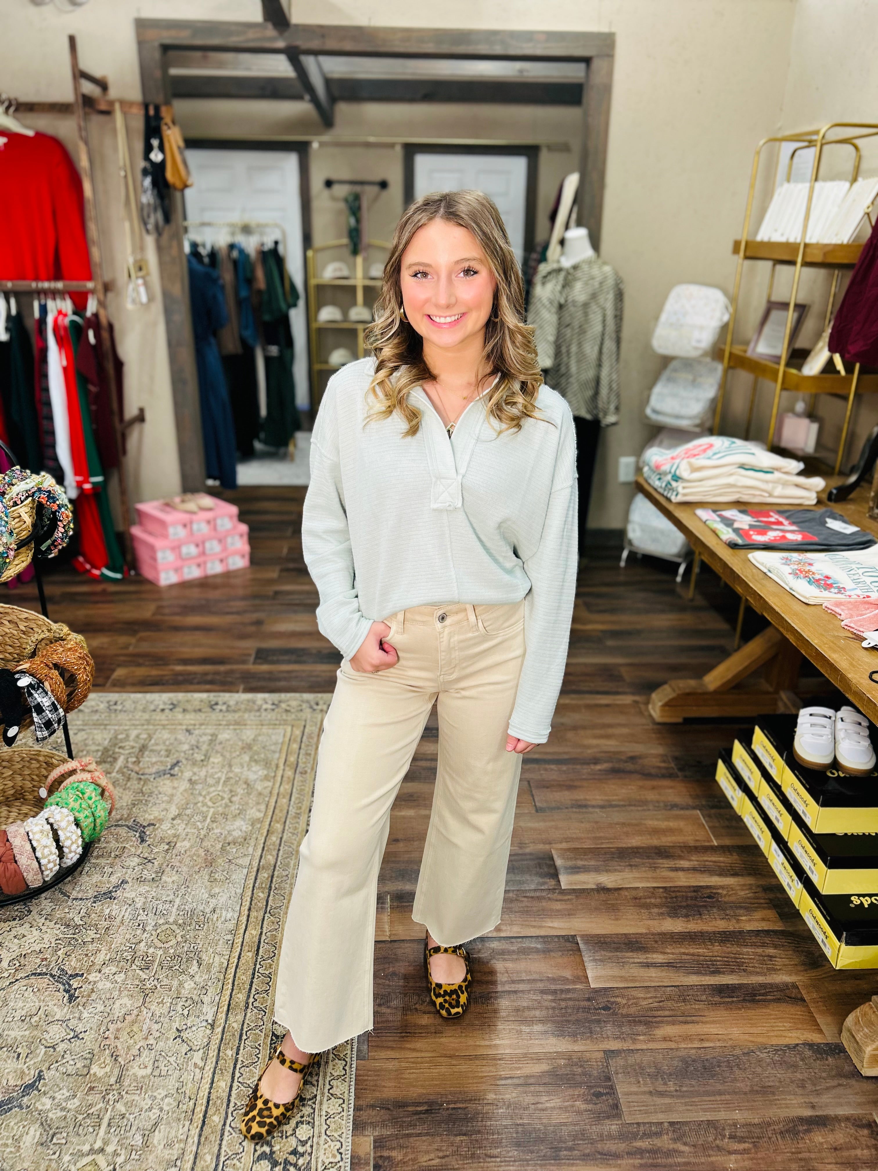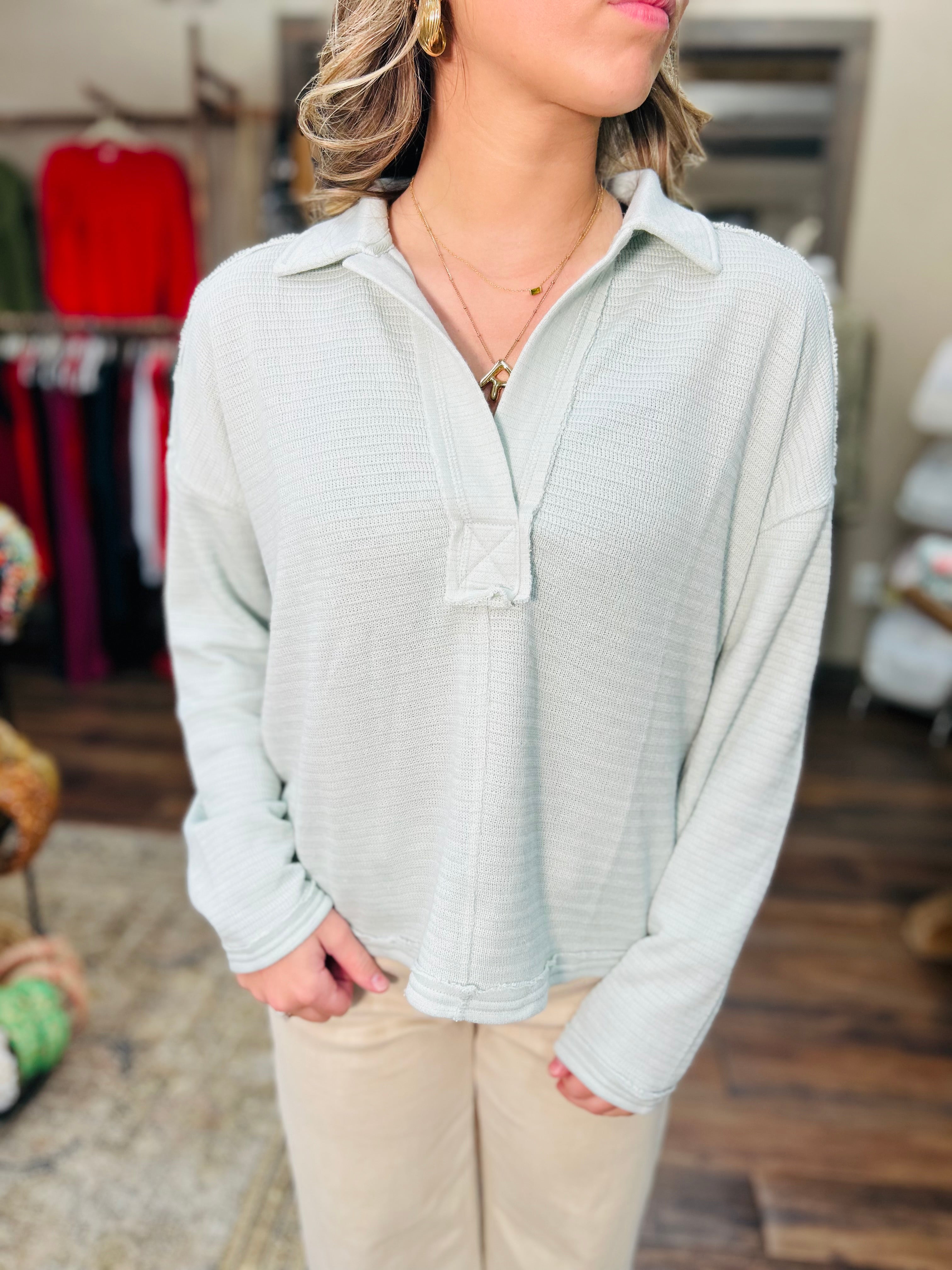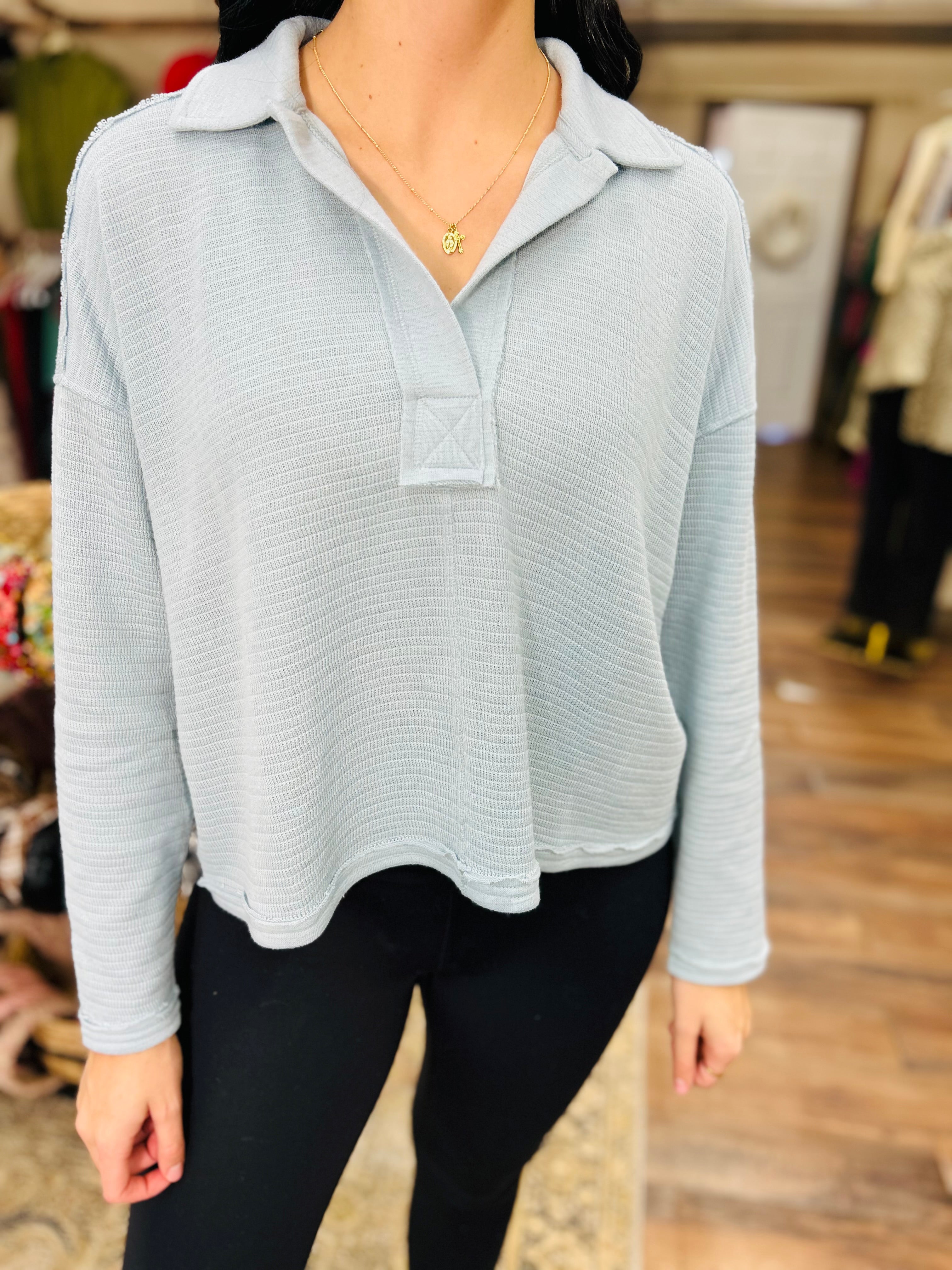 Elevate your everyday wardrobe with the Spring Breeze long sleeve top—a playful twist on classic style. Featuring a flattering V-neck, eye-catching exposed seams, and subtle texture throughout, this piece brings dimension and movement to any outfit. Perfect for layering or wearing solo, it's the effortless staple that works as hard as you do. Dress it up or down and let your personal style shine.