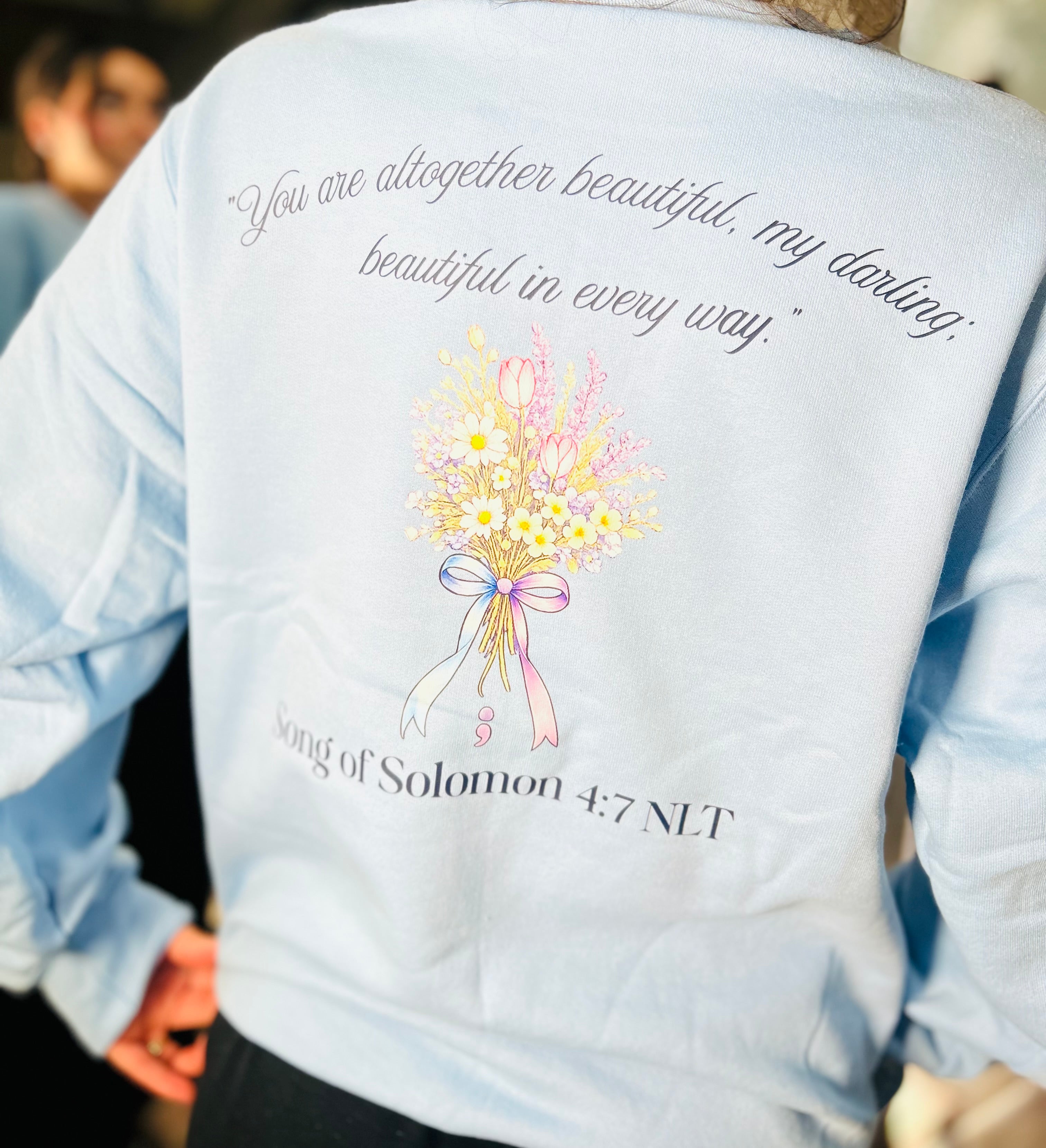 Stop the end suicide awareness sweatshirt! "you are altogether beautiful, my darling; beautiful in every way.' Song of Soloman 4:7NLT.