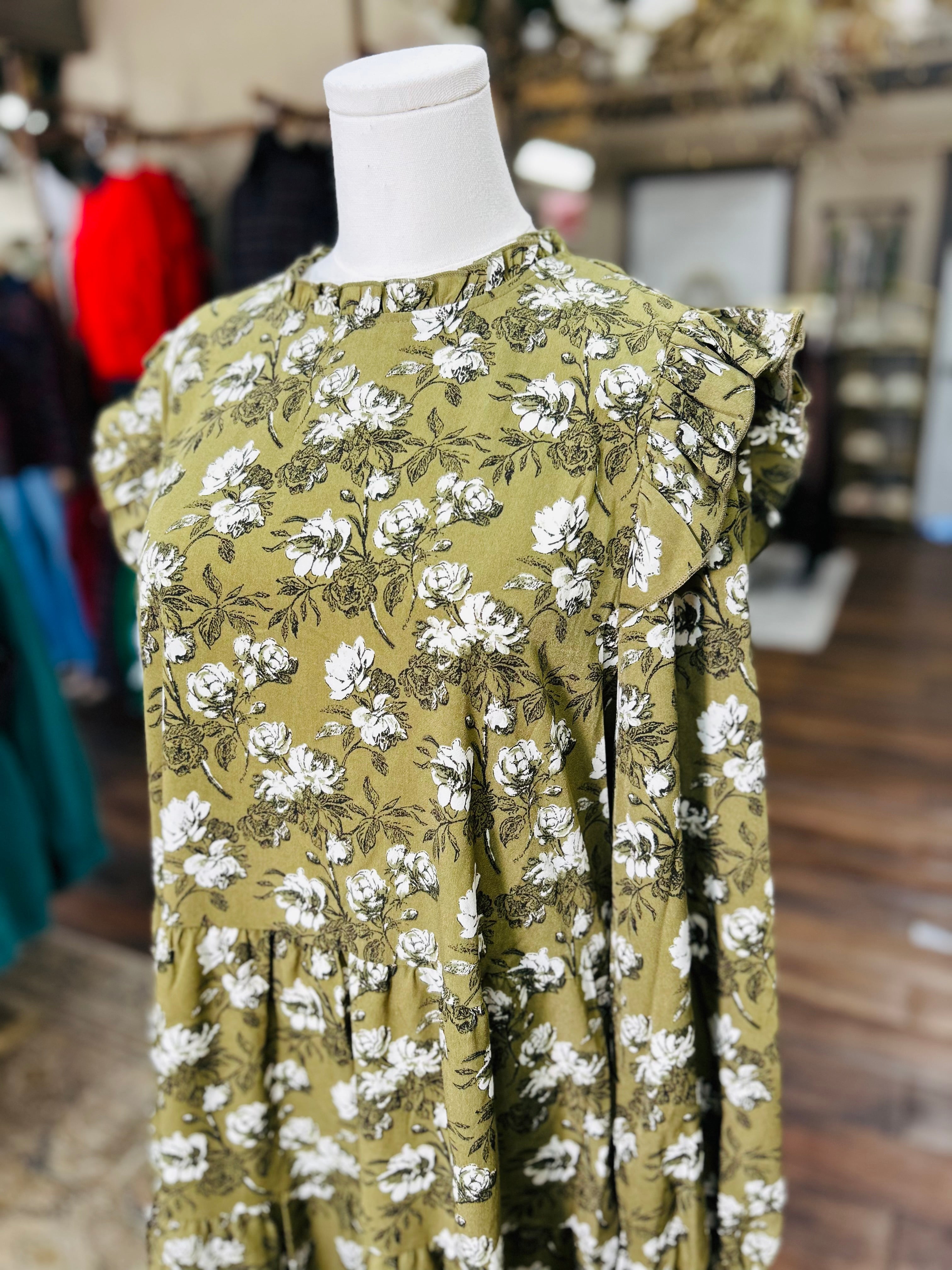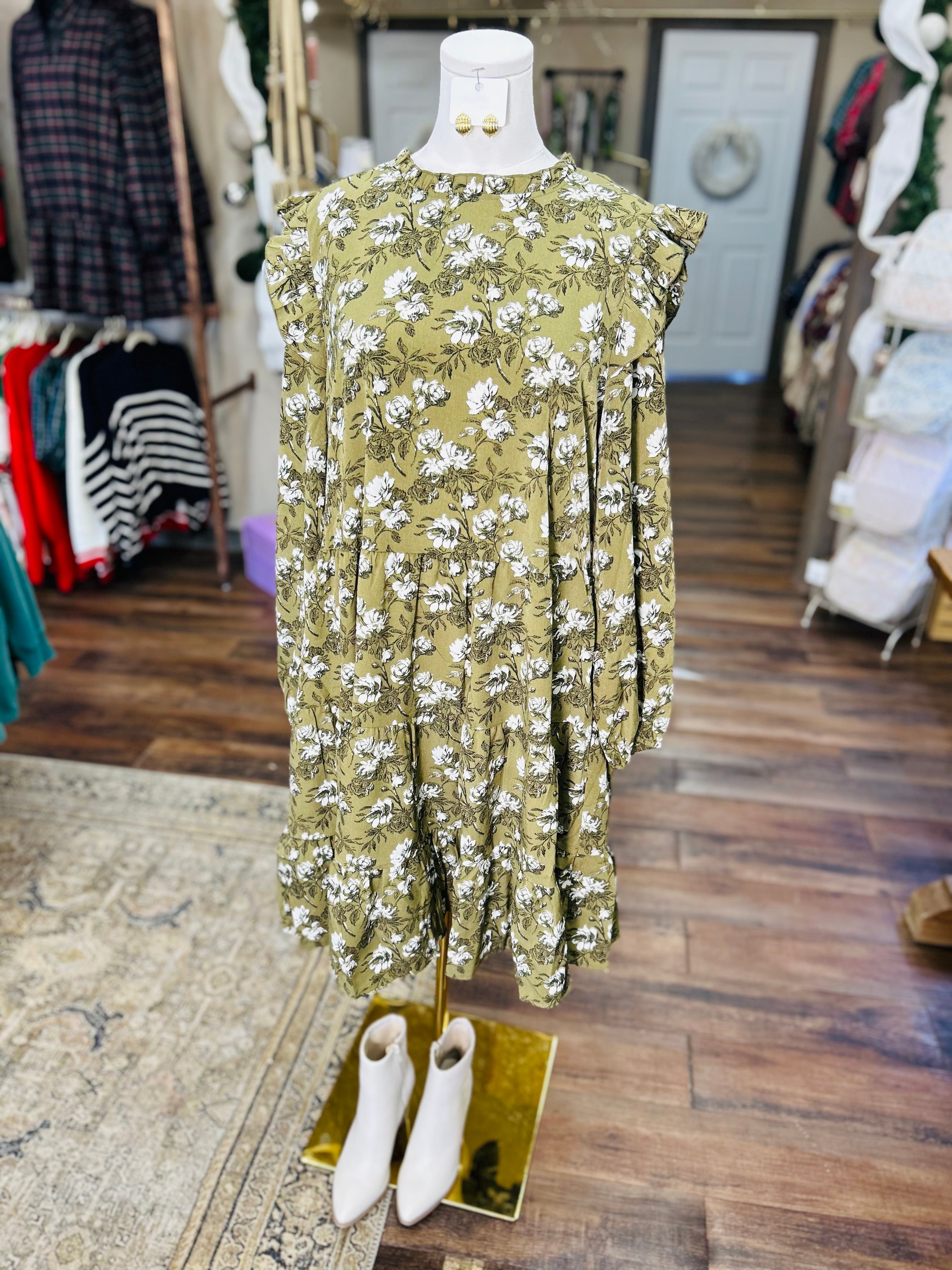 This playful floral dress, "Bayou Blossom" brings effortless charm with its delicate ruffle details. Perfect for twirling through spring days or brightening up casual outings, its flowing silhouette adds a touch of whimsy to your wardrobe. Embrace the lighthearted spirit of warm-weather fun in a dress that dances with every step.