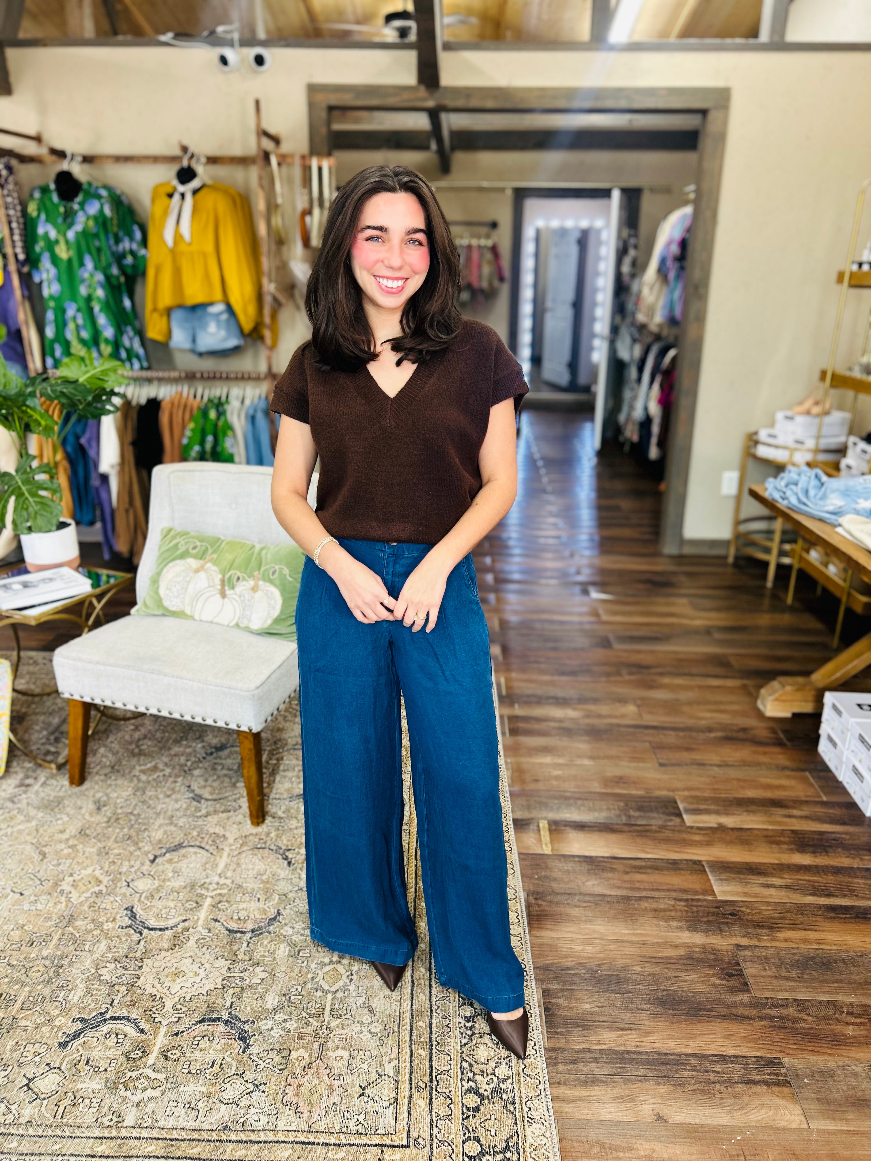 Elevate your everyday style with the "Effortless Edge" V-neck short sleeve knit pullover. Soft, breathable knit hugs your silhouette while the playful V-neck adds a touch of flirty charm. Perfect for layering or wearing solo, it brings casual cool with just the right amount of edge. Dress it up or down—comfort and style are always in season.