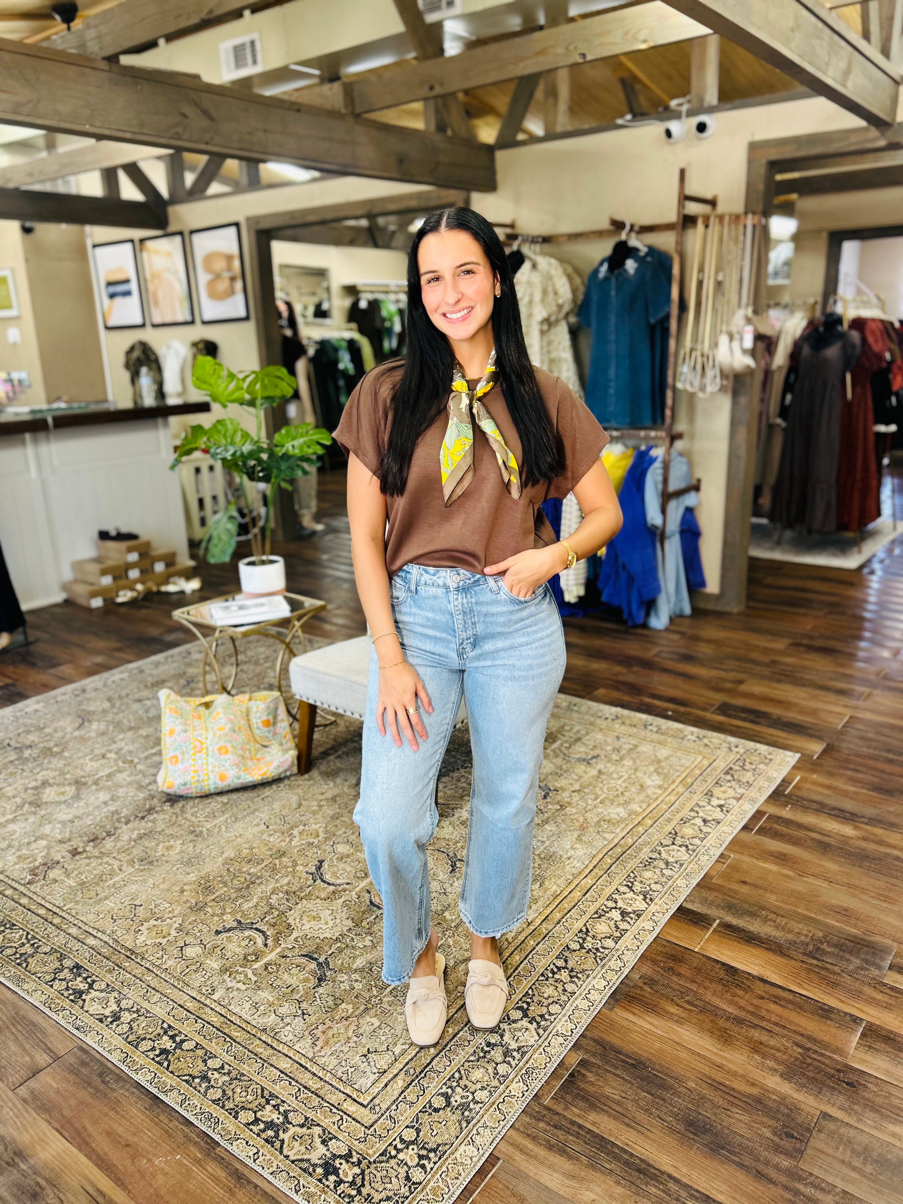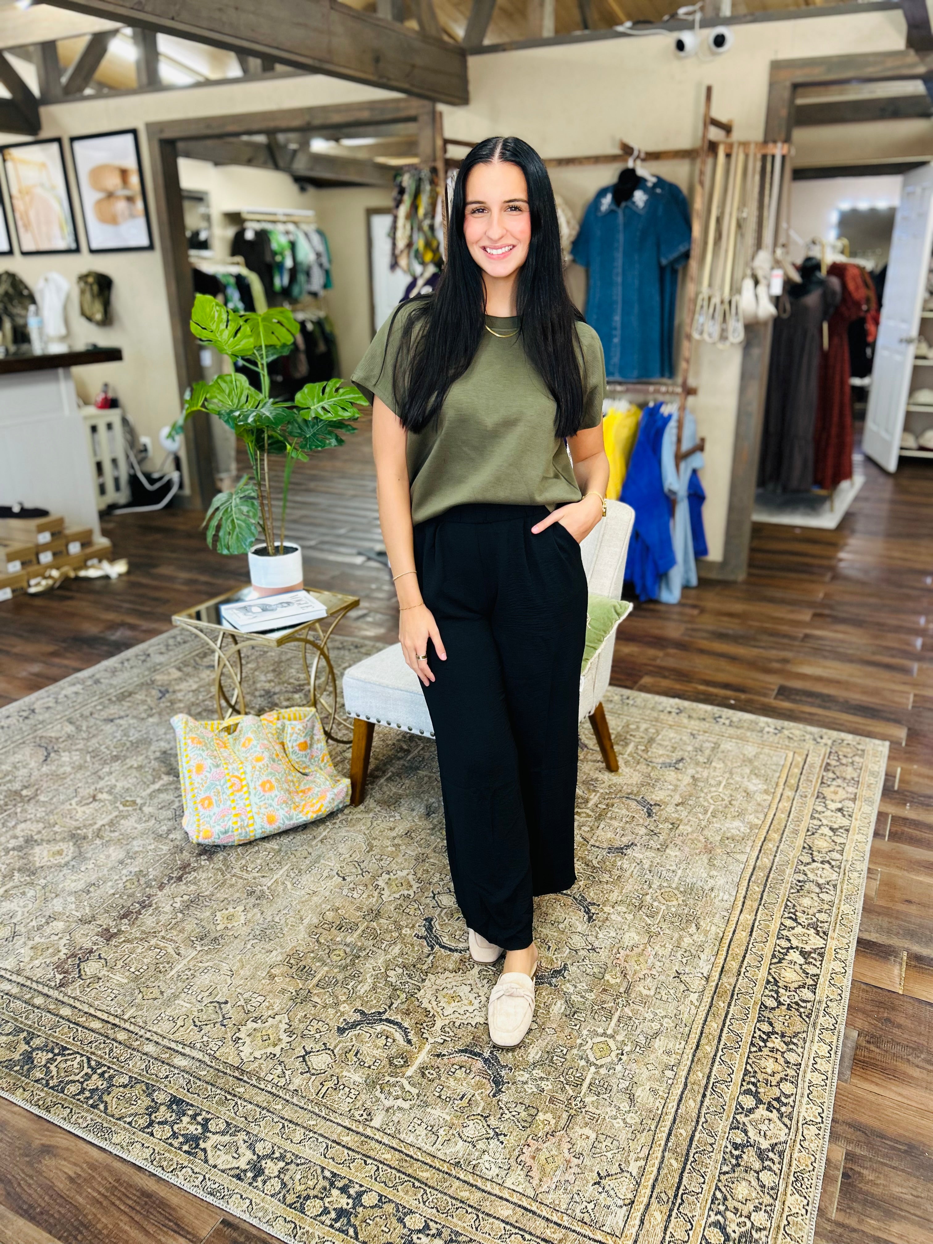 Bring cozy charm to your wardrobe with the Newly Knitted drop short sleeve round neck top. Available in warm brown and earthy olive, this knit piece pairs comfort with a laid-back vibe, perfect for easy layering or wearing solo on sunny days. It’s your new go-to for effortless style with a playful twist.