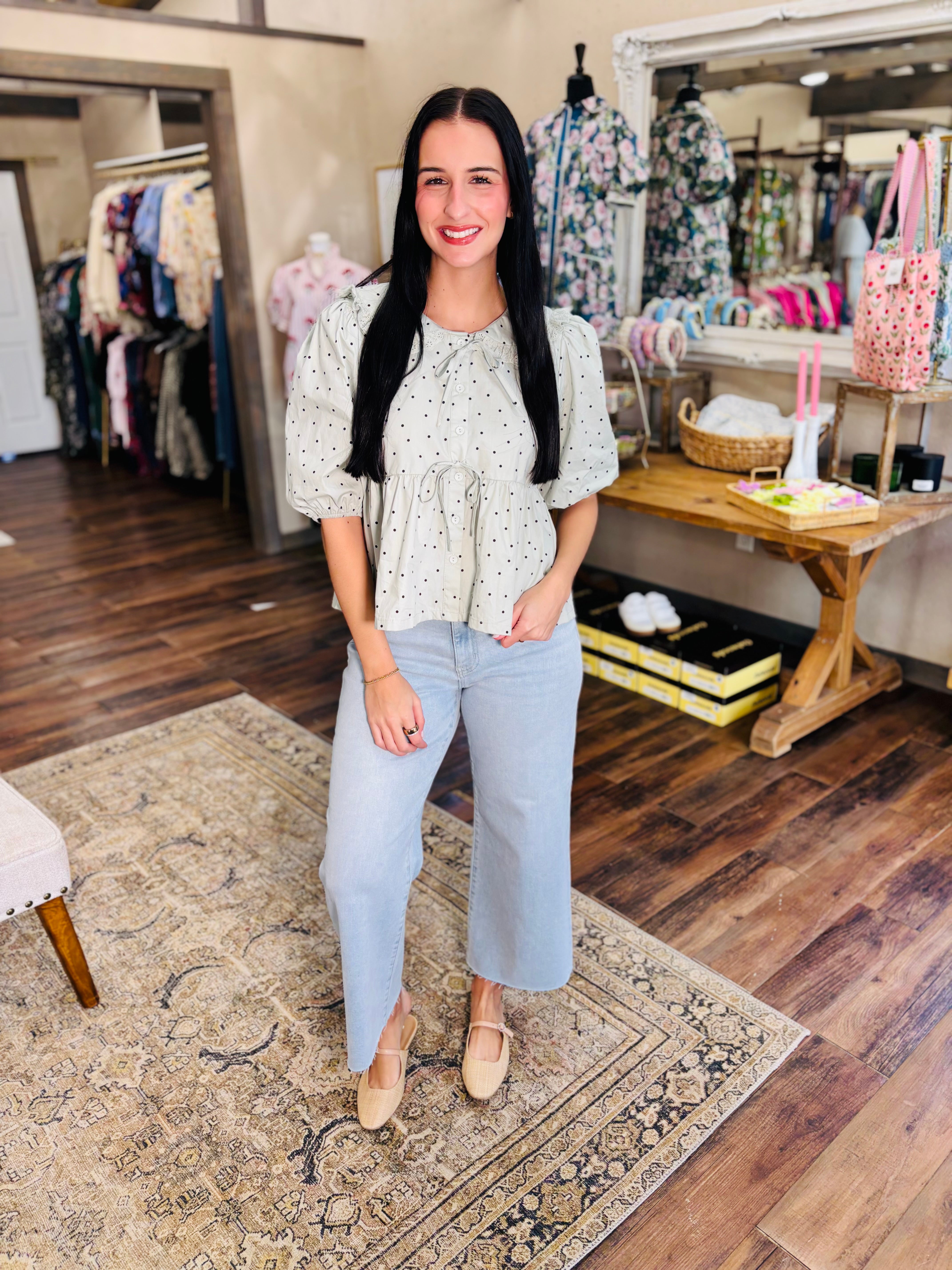 Elevate your everyday style with our charming Polka Dot Poise blouse—a delightful twist on classic sophistication. This half-sleeve wonder features a timeless polka dot woven pattern in soft light slate, paired with a vintage-inspired doll collar and a cheeky front bow tie that adds instant personality. Perfect for brunch dates, office days, or whenever you want to sprinkle a little whimsy into your wardrobe. Comfortable, versatile, and undeniably fun—because looking put-together shouldn't mean sacrificing playfulness.