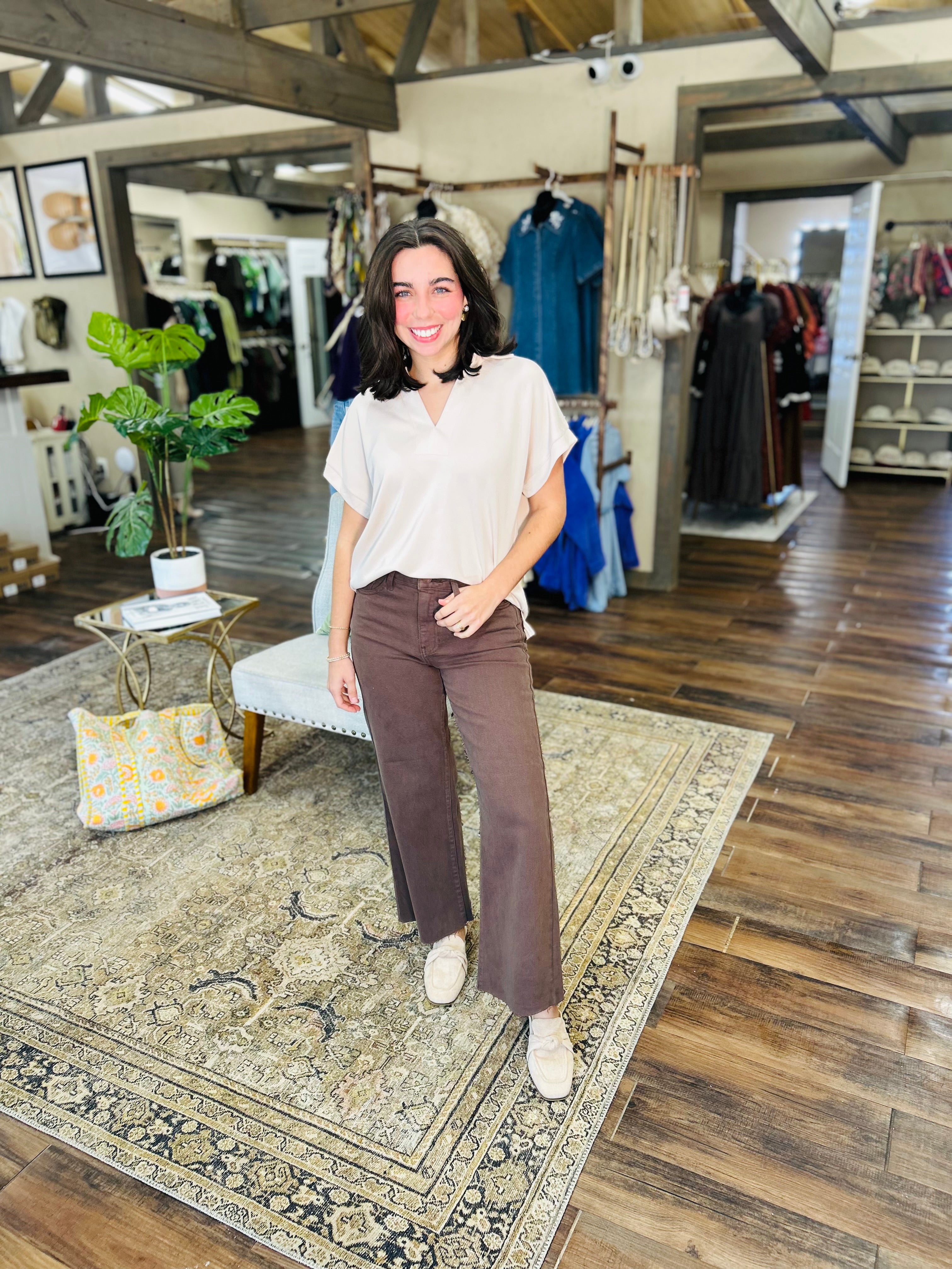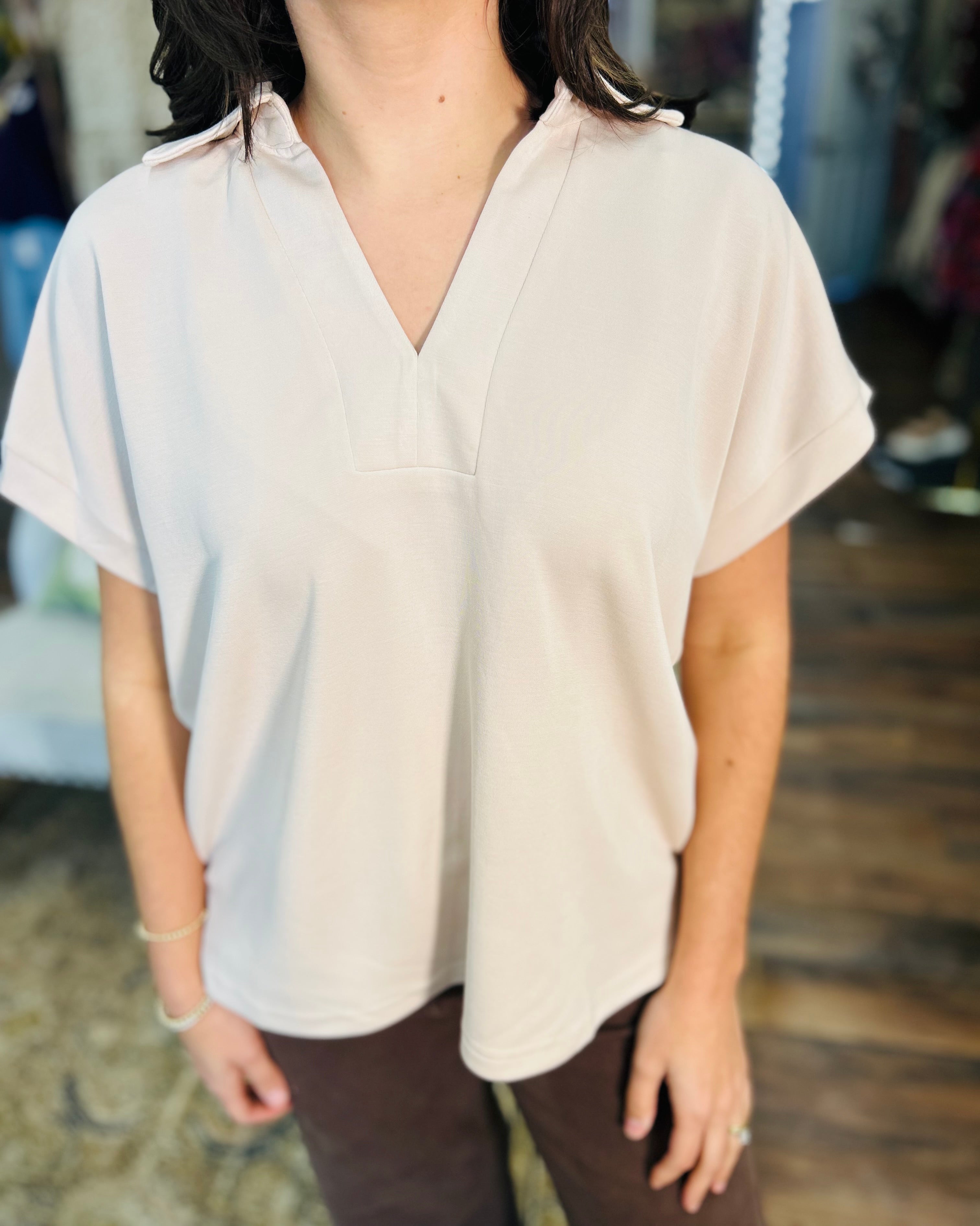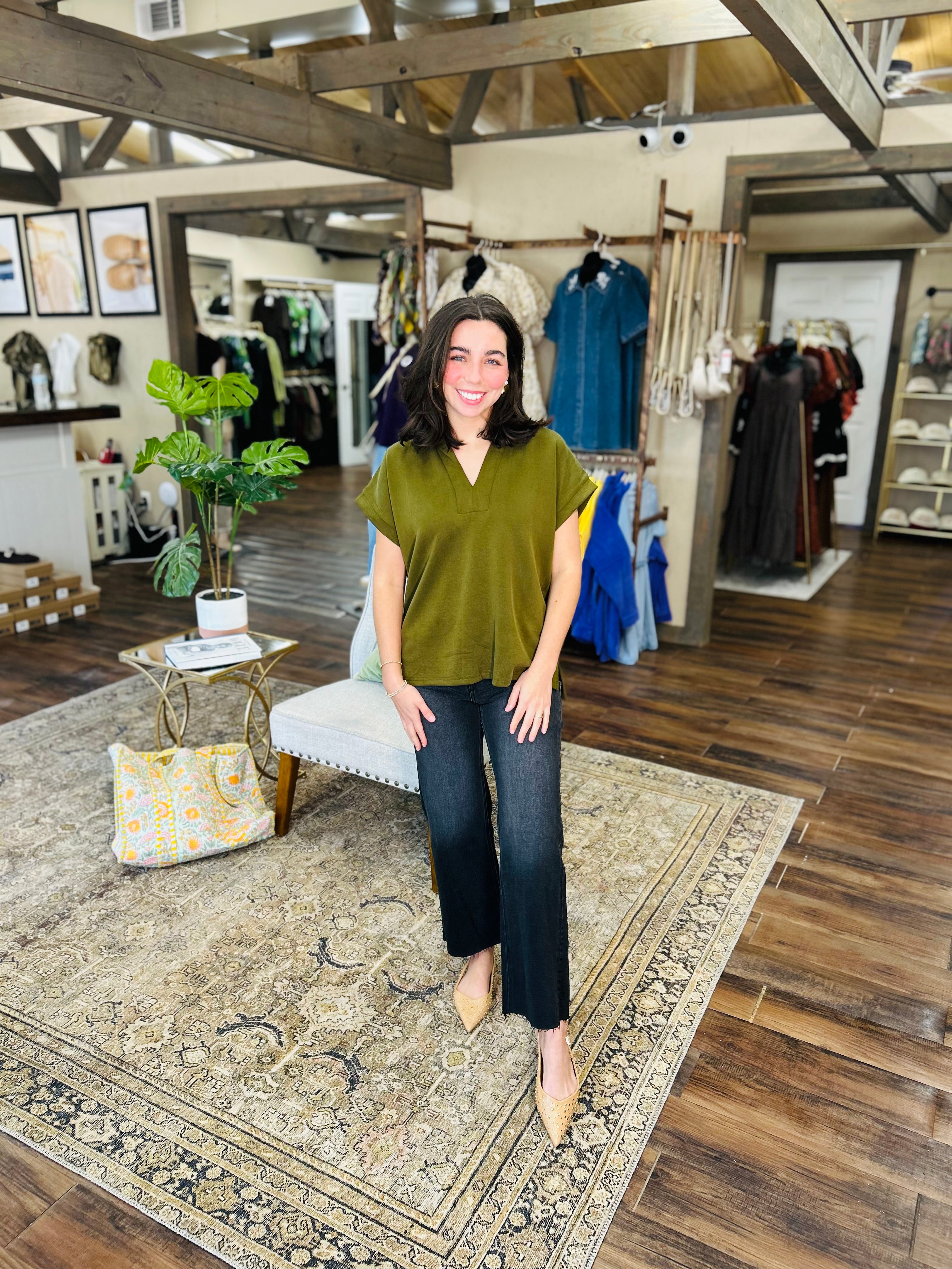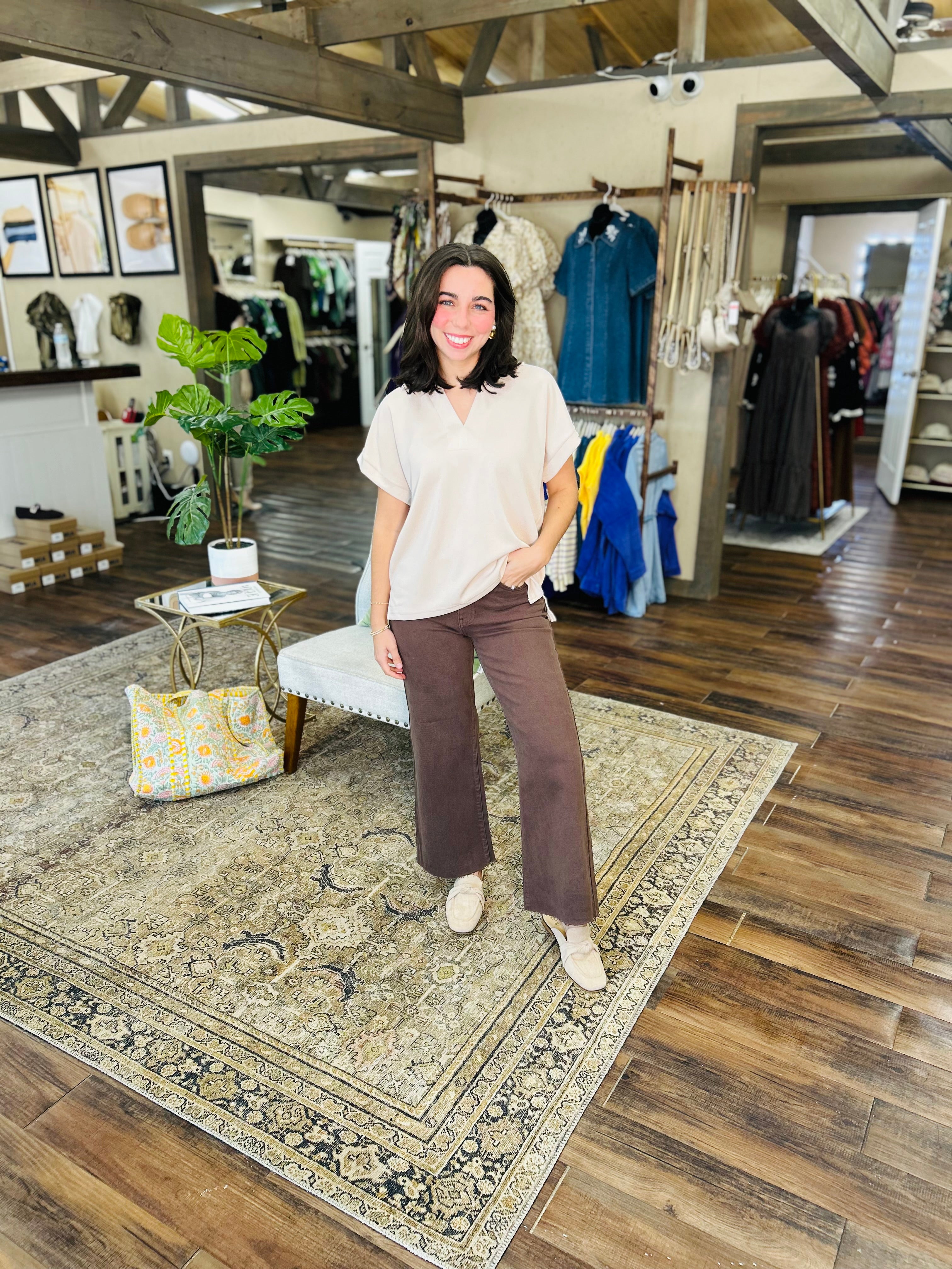 Elevate your everyday look with Sweet Serenity, a cozy V-neck top in soothing earth tones. Its relaxed fit and natural hues make it your go-to piece for effortless casual style that feels as good as it looks. Perfect for lounging or stepping out with a playful vibe!