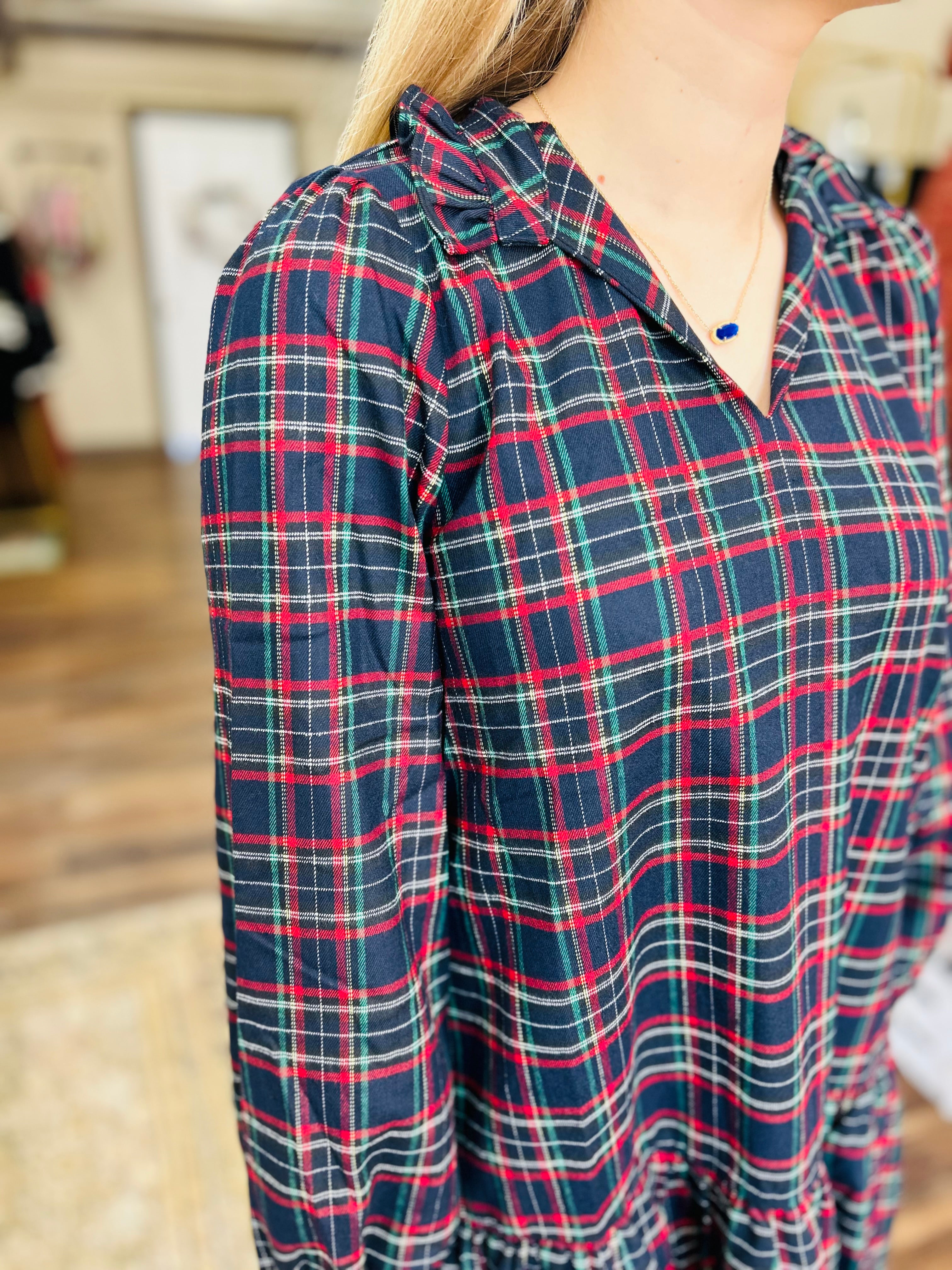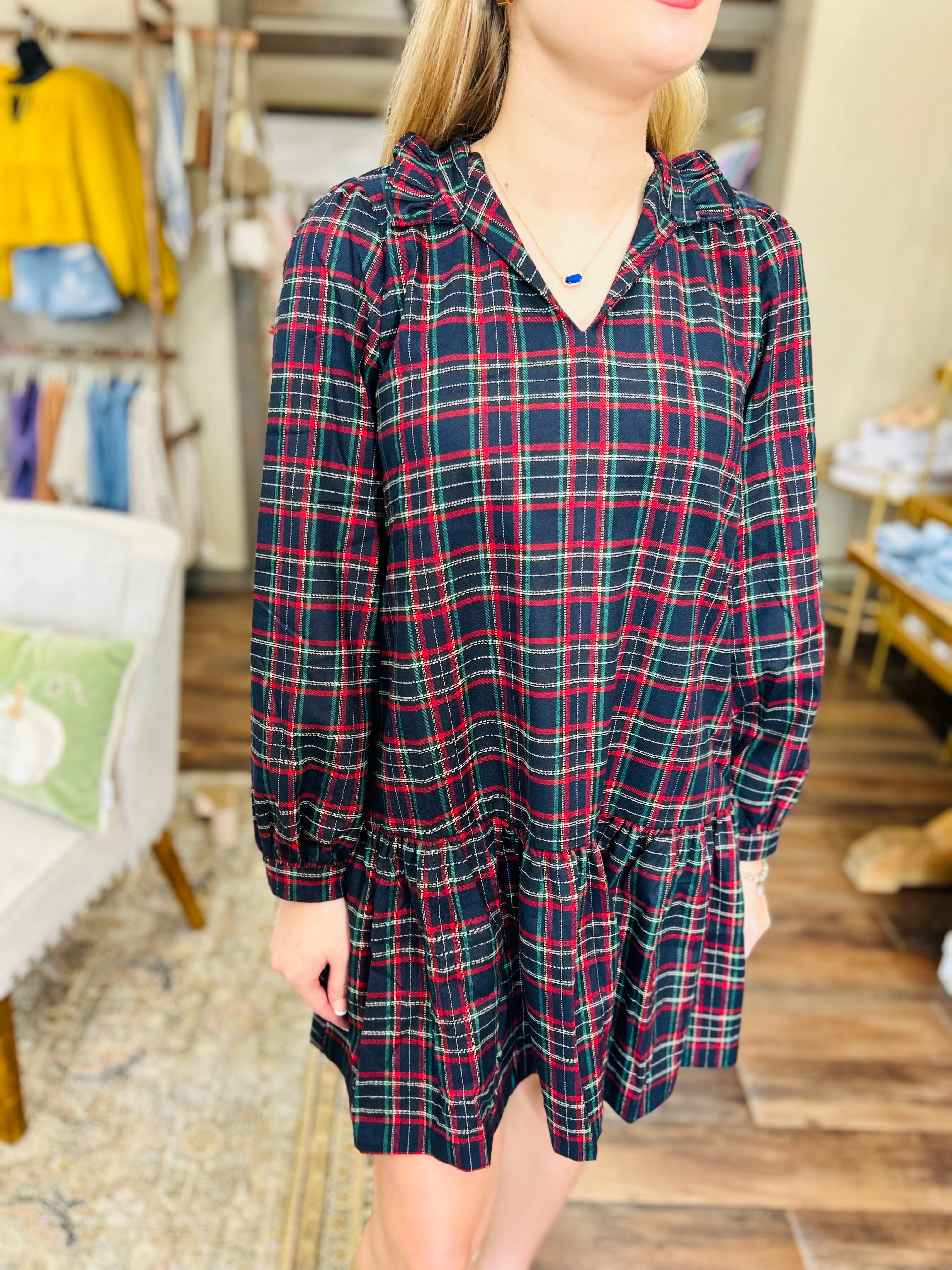 Celebrate the season in style with our Merry Moments dress! This plaid long-sleeve beauty features a festive Christmas plaid pattern that adds a cheerful twist to your holiday wardrobe. Perfect for cozy gatherings or lively parties, its comfy fit keeps you looking merry and bright all day long. Bring on the holiday fun with a dress that’s as joyful as the season!