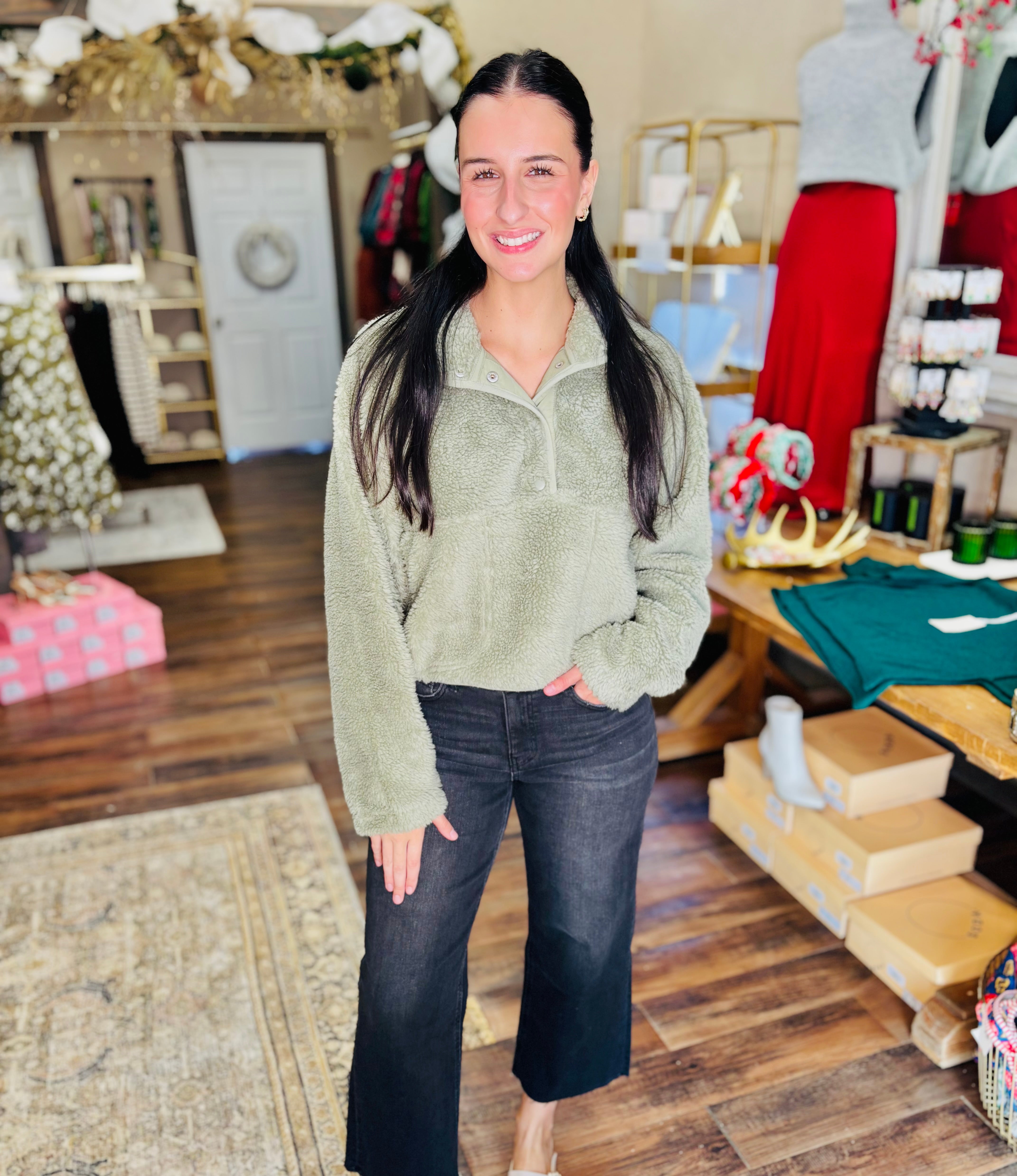 Discover the cozy embrace of this "Plush Sherpa Jacket", perfect for chilly days. The high-collar design and soft fabric provide warmth and comfort, while the front pockets and a visible zipper add a practical touch. Ideal for layering over basics or styling for a casual outing. Pair with jeans or leggings for an effortless look.