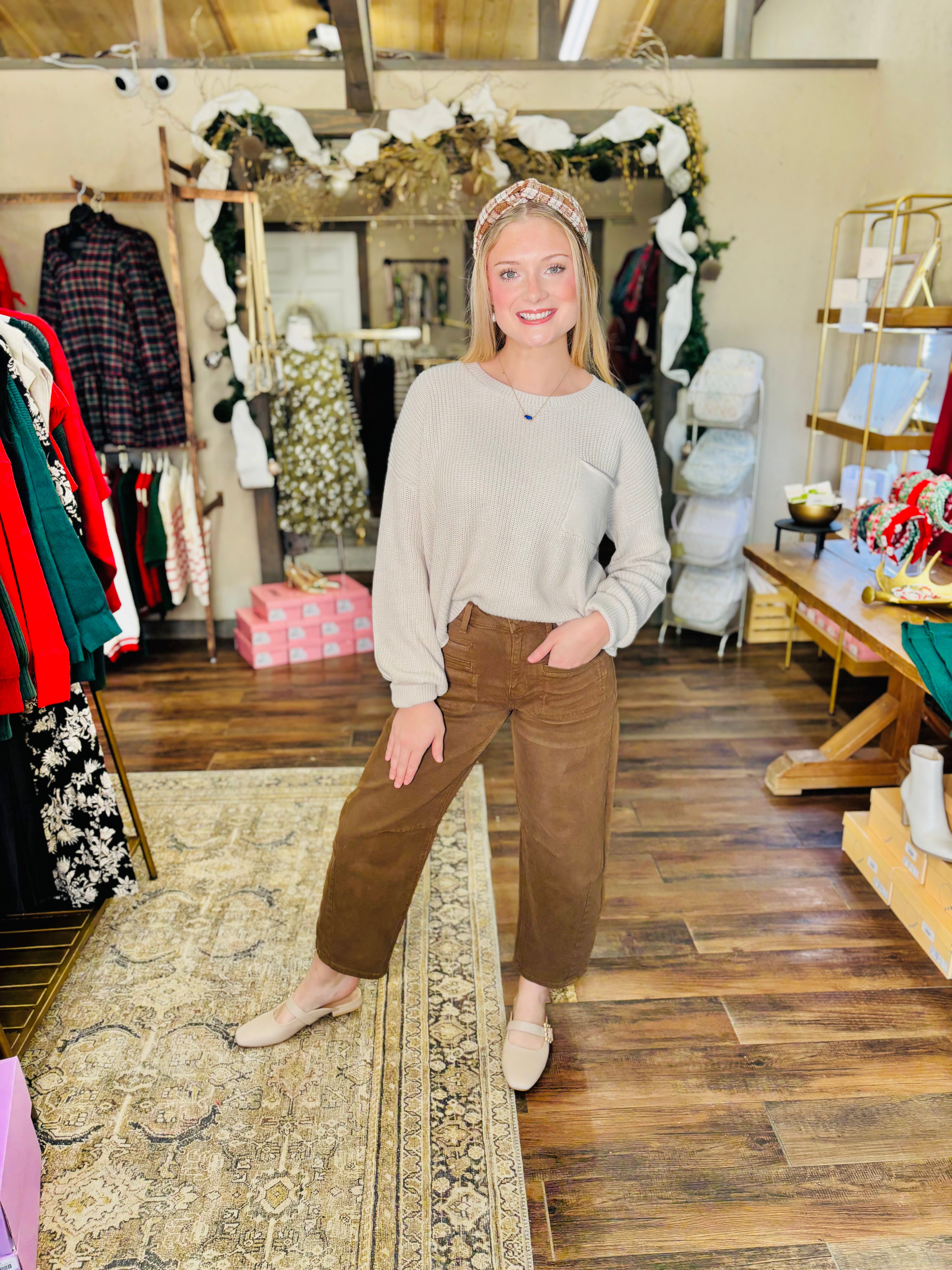 "Polar Pocket" features a relaxed silhouette perfect for versatile styling. A distinctive patch pocket on the chest adds a functional touch, making it ideal for casual settings or layering for cooler evenings. Pair it with denim jeans or trousers and ankle boots for a laid-back yet polished ensemble