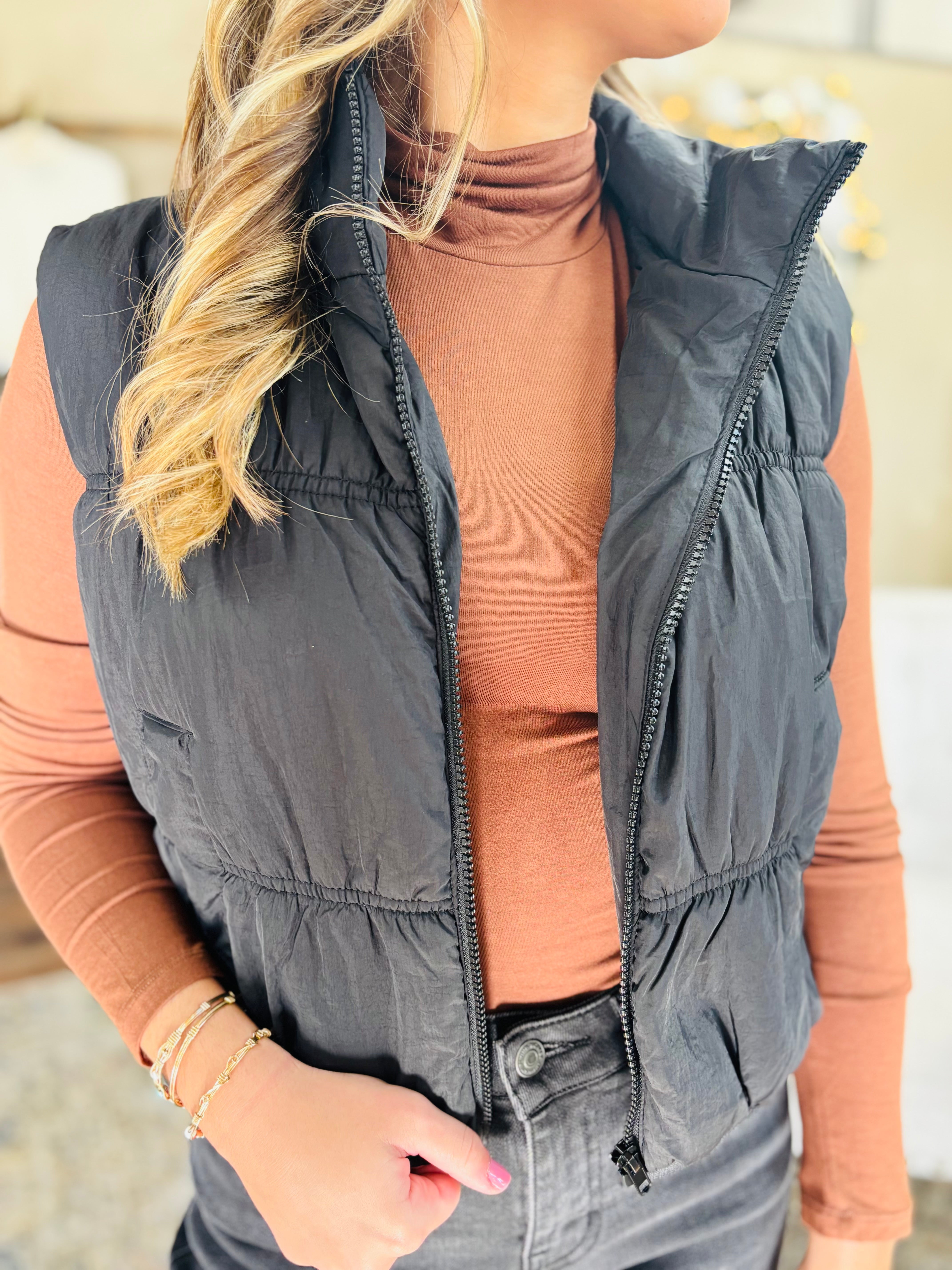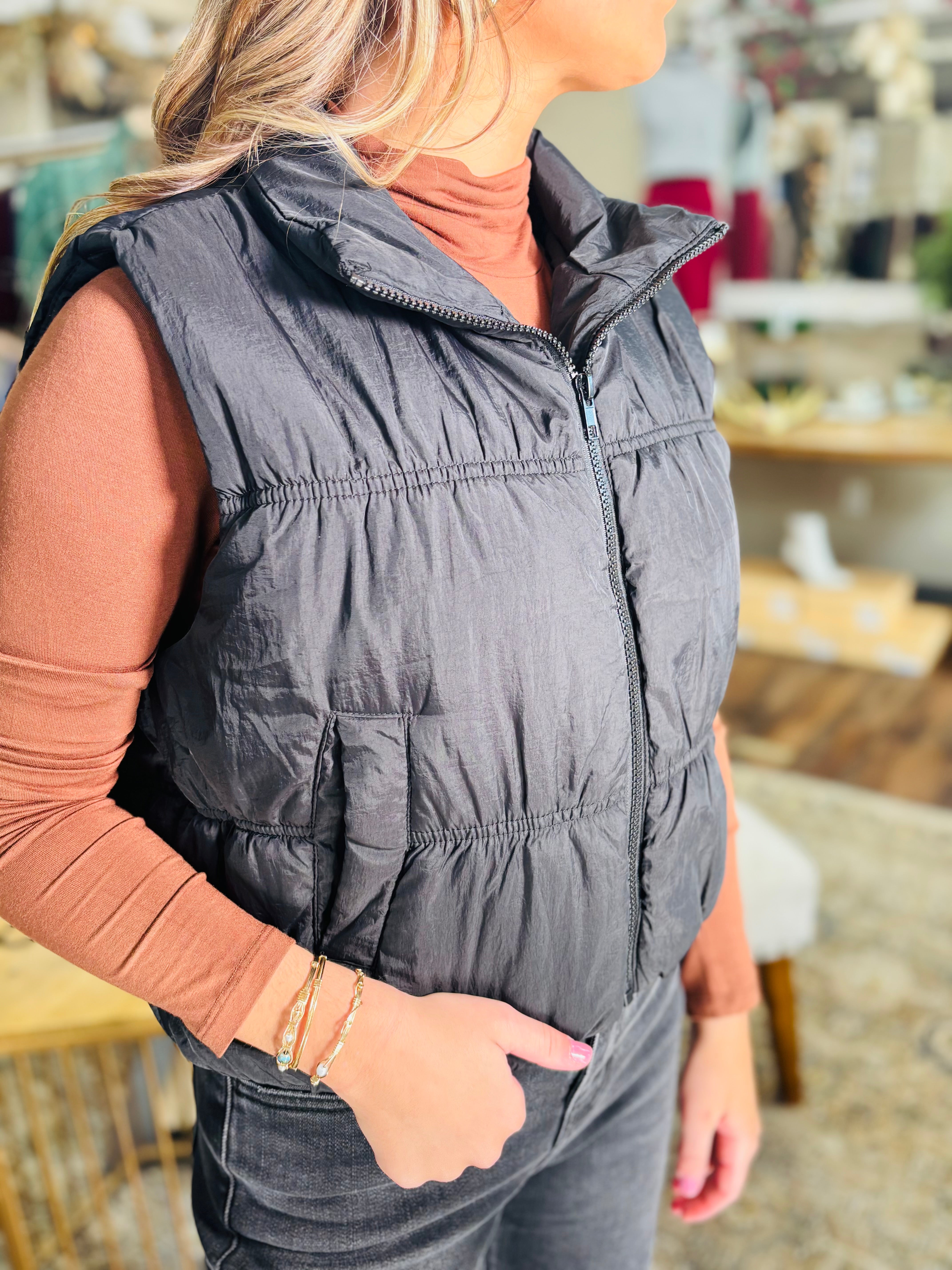 Stay cozy and chic with the "Precious Puffer", a fun and flirty cropped vest designed to zip you up in warmth and style. The collared neckline adds a cool twist, while the puffer design keeps you snug without the bulk. Perfect for layering over your favorite tees or sweaters, it’s your go-to for a playful pop of comfy fashion wherever you go!